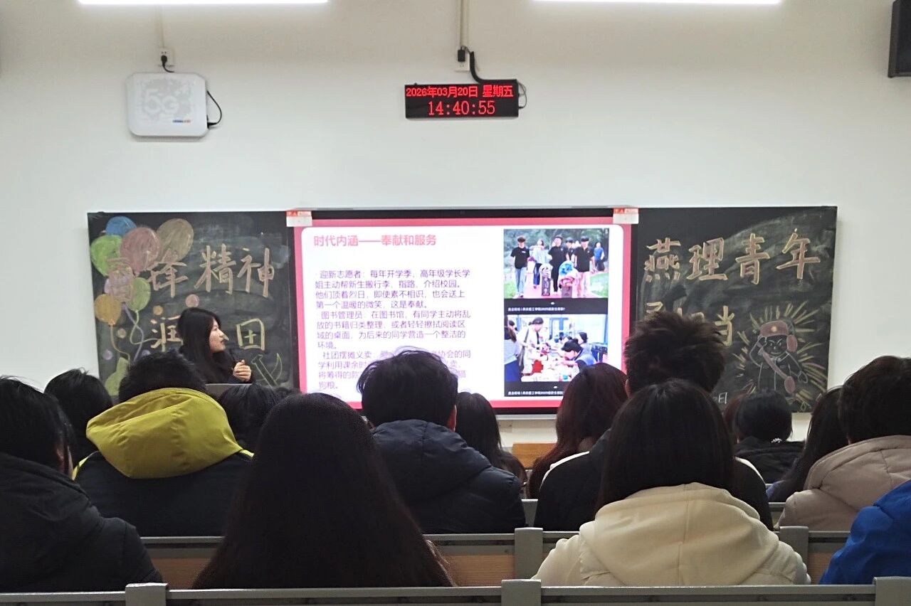 (人文教育学院新闻中心)三月校园暖意浓,雷锋精神代代传。在第63个“学雷锋纪念日”到来之际,人文教育学院开展“雷锋精神润心田,燕理青年勇担当”主题班会活动,号召青年学子在服务他人、奉献社会中涵养情怀、砥砺担当。
