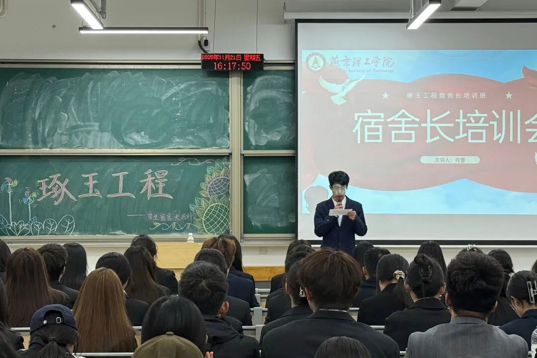 (人文教育学院新闻中心)为提升宿舍长履职能力,深入推进良好舍风建设,11月21日,人文教育学院联合法学院于K1-112举办“琢玉工程”学生宿舍长培训班。人文教育学院团总支书记肖雪担任主讲人,两学院2025级学生宿舍楼长及宿舍长代表参加培训。 活动现场 人文教育学院团总支书记肖雪主要围绕《宿舍管理:晚归、卫生检查标准》展开讲解,重点强调晚归界定标准、宿舍卫生检查标准、宿舍违纪行为及处理方法,进一步明确了宿舍长职能,更好地提升了宿舍长管理能力,推动了文明宿舍建设。 活动现场 本次培训构建了宿舍管理经验的交流与学习平台,帮助楼长、宿舍长理清了工作思路、增强了服务意识。人文教育学院将以此次培训为契机,进一步营造良好宿舍氛围,打造安全、整洁、舒适的宿舍环境,共筑文明有序的美好校园生活。 ——燕京理工学院人文教育学院新闻中心