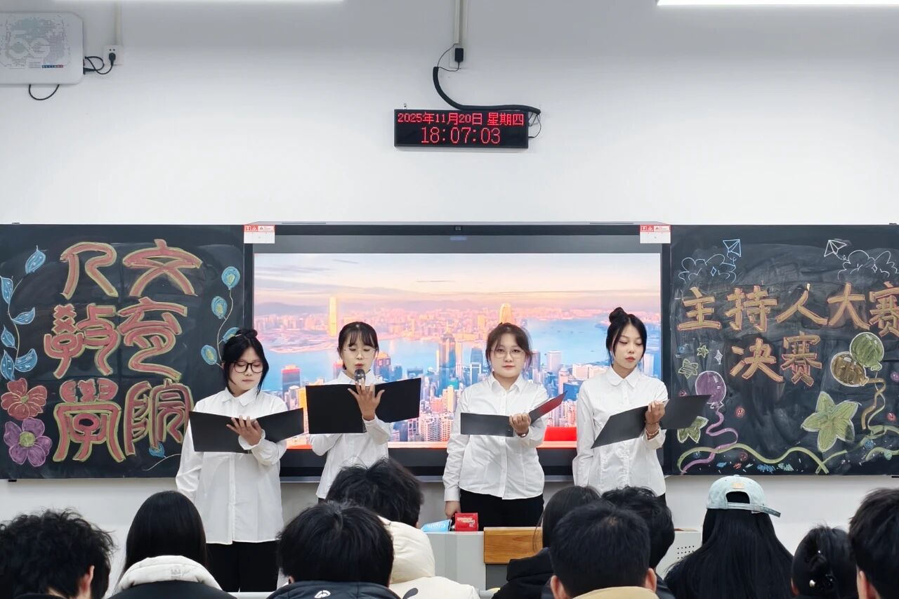 (人文教育学院新闻中心)为进一步推进校园精神文明建设,丰富学生课余文化生活,11月20日,人文教育学院学生会于K2-108举办“言韵梦想 声绽华光”主持人大赛。人文教育学院学生会负责人及参赛选手参加活动。 活动现场 比赛第一环节“声临其境”,参赛选手用灵动的声音演绎精彩故事,为角色注入鲜活灵魂;模拟主持环节中,他们从容掌控全场,尽显专业素养。晋级“逐鹿群雄”的八位选手凭借深厚的语言功底出口成章、语惊四座,赢得现场观众的阵阵掌声。 活动现场,人文教育学院学生会主持人队带来诗朗诵,文艺部成员献上精心编排的舞蹈,星火话剧团成员深情演唱。 经过综合评比,人文教育学院学生会负责人喻天姿为获奖选手颁发荣誉证书。 活动现场 此次主持人大赛的圆满落幕,为广大学生提供了展示语言才华的平台,也成为选手们梦想启航的崭新起点。愿每一位热爱语言的学子都能以声为翼,奔赴更远征程。 ——燕京理工学院人文教育学院新闻中心