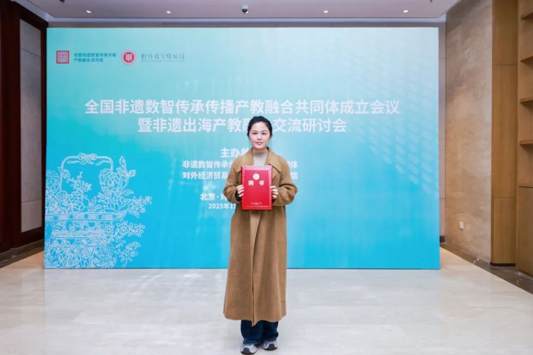 (人文教育学院新闻中心)为深入推动学科交叉融合,助力非遗资源与高等教育、数字技术深度协同,11月15日、16日,由中国非物质文化遗产保护协会、教育部职业院校信息化教学指导委员会指导、对外经济贸易大学发起,多方力量汇聚的非遗数智传承传播产教融合共同体成立会议于对外经济贸易大学召开。新视域文化产业学院、人文教育学院学前教育专业教师代表戚晓思参加会议。