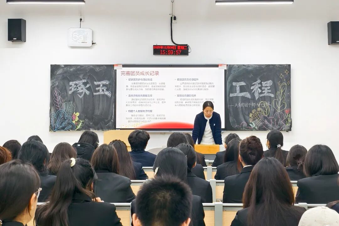 (人文教育学院新闻中心)为强化组织建设规范性,健全团员成长全周期记录体系,12月9日,人文教育学院联合法学院于K1-105举办“琢玉工程”共青团团干部培训班,两学院2025级全体团支书参加培训。法学院团总支书记孙双慧担任主讲人。 活动现场 培训中,孙双慧老师围绕团支部档案的建设意义、活动档案管理、团员信息管理以及档案安全与权限四大核心板块展开讲解,进一步明确了归档工作的要求与操作方法,提升了团干部的信息整理与档案管理能力,强化其规范建档意识。 活动现场 本次培训有助于团干部准确把握档案管理要求,明确了信息归档的责任与规范,促进了团干部将培训所学转化为工作实效,以更专业的能力做好档案记录,夯实团务工作基础。 ——燕京理工学院人文教育学院新闻中心