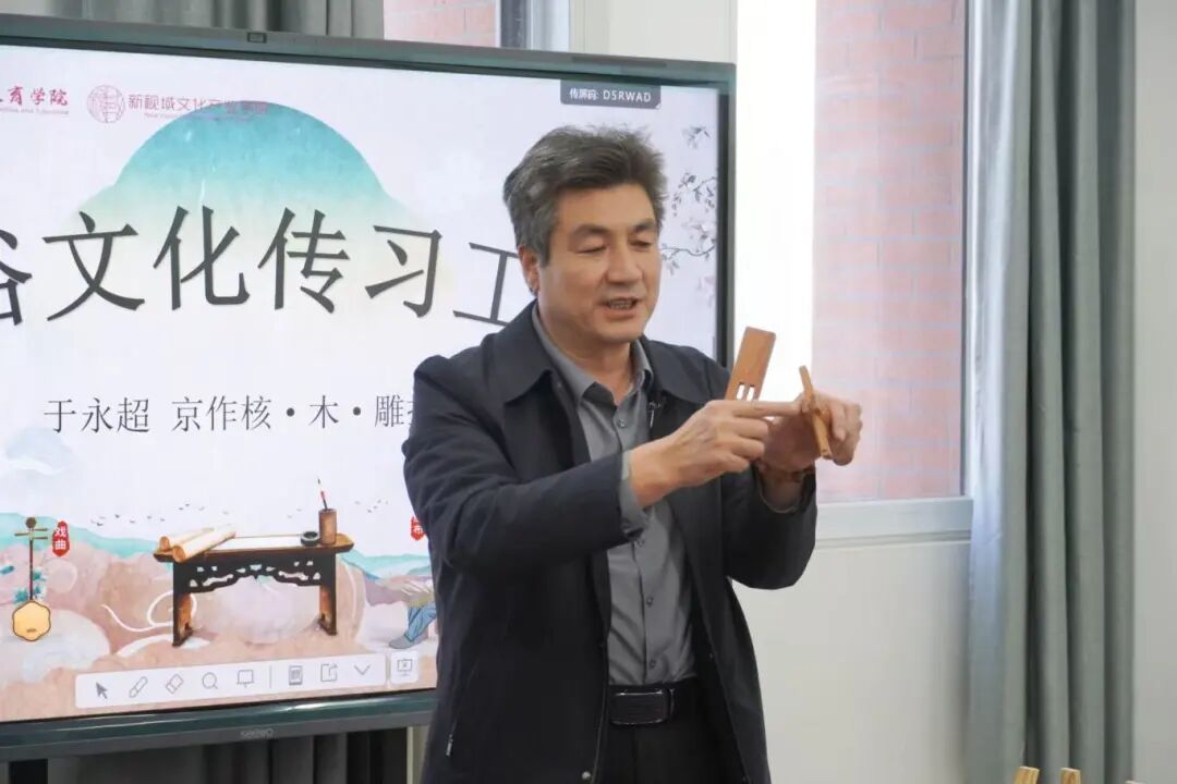 (人文教育学院新闻中心)为传承非遗文化、丰富民俗技艺实践体验,11月21日,为深入贯彻落实学校第五次教育教学工作会议精神,燕京理工学院新视域文化产业学院特邀“京作核·木雕·技艺”非遗传承人于永超老师开展训练营活动。人文教育学院院长刘忠见、教学副院长刘娜娜,新视域文化产业学院负责人刘晨颖,幼儿园教师代表,学前教育专业教研室主任戚晓思、课程群负责人李米娜、工作坊负责老师朱敬梅及学生代表30余人参加活动。 老师于永超 木雕,是中国传统文化宝库中一颗璀璨的明珠。它以刀为笔,以木为纸,将自然的馈赠与人类的智慧完美融合。一方朴素的木料,在匠人手中历经千刀万凿,被赋予生命、情感与故事,最终升华为一件件承载着历史记忆与地域风情的艺术珍品。 于永超老师自幼酷爱林果,始终致力于宫廷家具制作与传承,麻核桃树种保留和推广,对京作古典家具及麻核桃产业发展积极建言献策,推动了京作古典家具、文玩核桃两大特色产业发展,在扩大就业、群众增收致富中发挥了积极作用。 一把平凡的刻刀,在老师手中仿佛被赋予了魔力。每一次起刀,都精准而果断;每一次打磨,都耐心而细致。这不仅仅是技术的展现,更是一种心与物的交流。从老师的言语和动作中,训练营学员真切感受到了“择一事,终一生”的匠人精神。 活动现场 在老师的指导下,学员亲手触摸木料纹理,看到了传统文化与自己创意的完美融合,共同领略了木雕艺术的博大精深,感受到了非遗文化的独特魅力。在这个快速变化的时代,总有一些东西需要慢下来,用心去守护,用时间去打磨。 ——燕京理工学院人文教育学院新闻中心